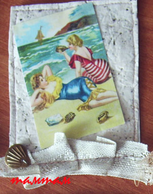 Здесь еще добавлена марлечка, покрашенная акварельными красками, и рыбка-подвеска (типа, её поймала на крючек дама с картинки).